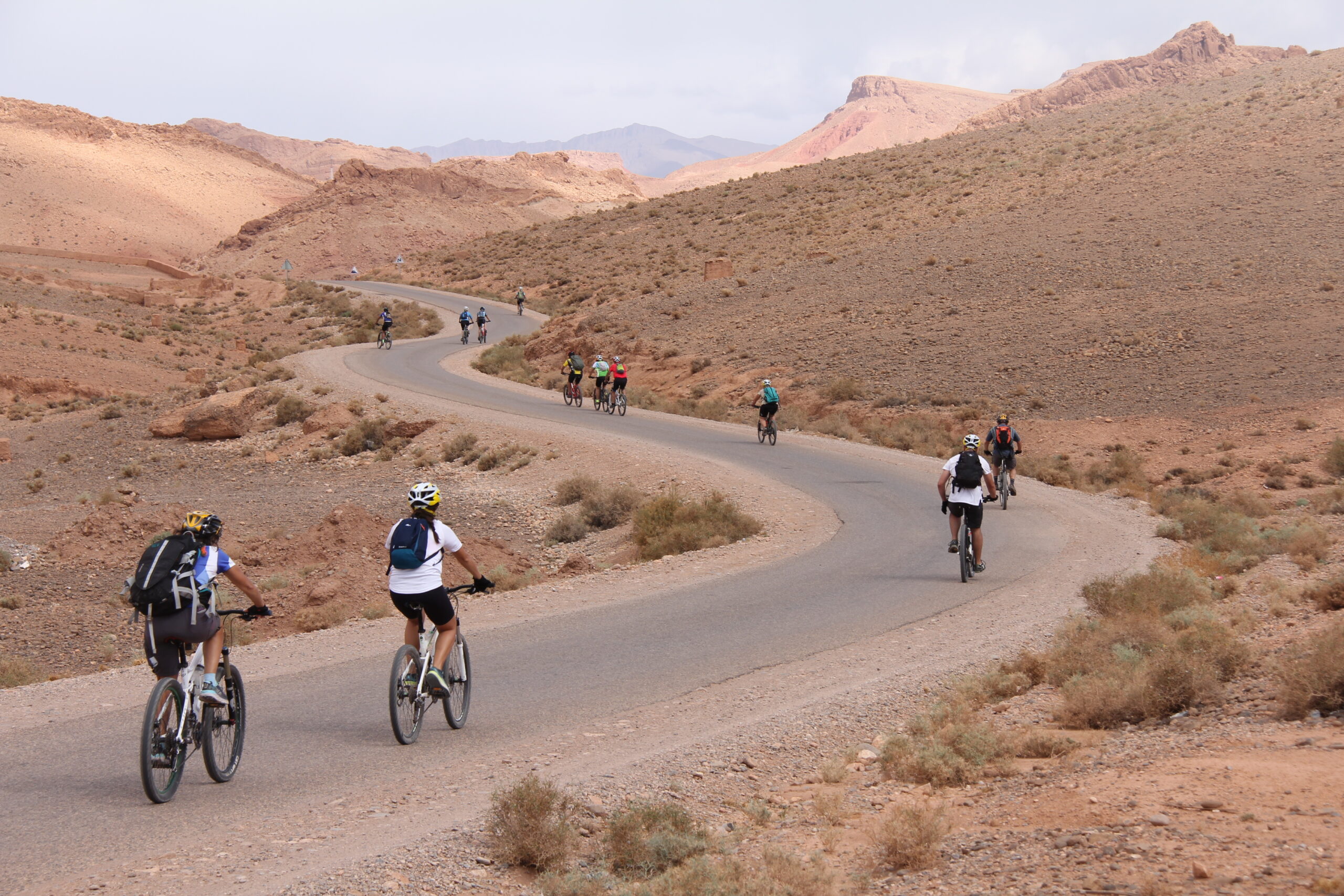 Atlas to Sahara desert MTB 9-day tour: on our amazing Atlas to Sahara mountain bike tour, taking us from Marrakech to the High Atlas Mountains, then descending along the Draa Valley to the fringes of the Sahara Desert, we cycle through numerous traditional Berber villages, on the way visiting the ancient Kasbah Telouat & Kasbah of Ait Benhaddou and making plenty of mint tea stops to experience close-up the legendary hospitality that has risen up from the remote outposts of the desert offering you a journey of a lifetime. ..