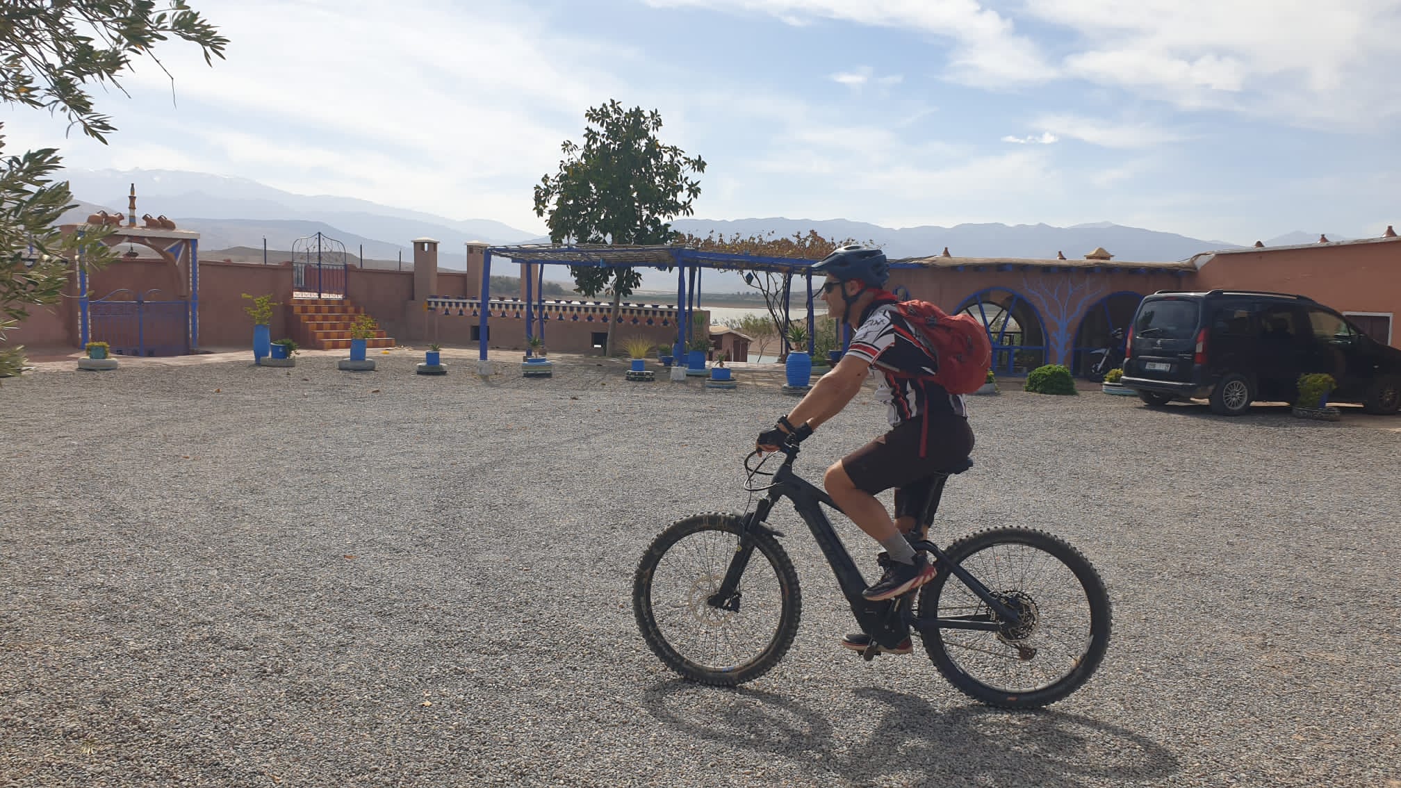 After breakfast at the hotel, transfers to Ourika valley where you start your e-bike tour, first climb it’s up to Tadmamt pass, after lunch ride down to town Asni where you finish your first day bike trip, transfers to Imlil, spend the night in nice hotel.