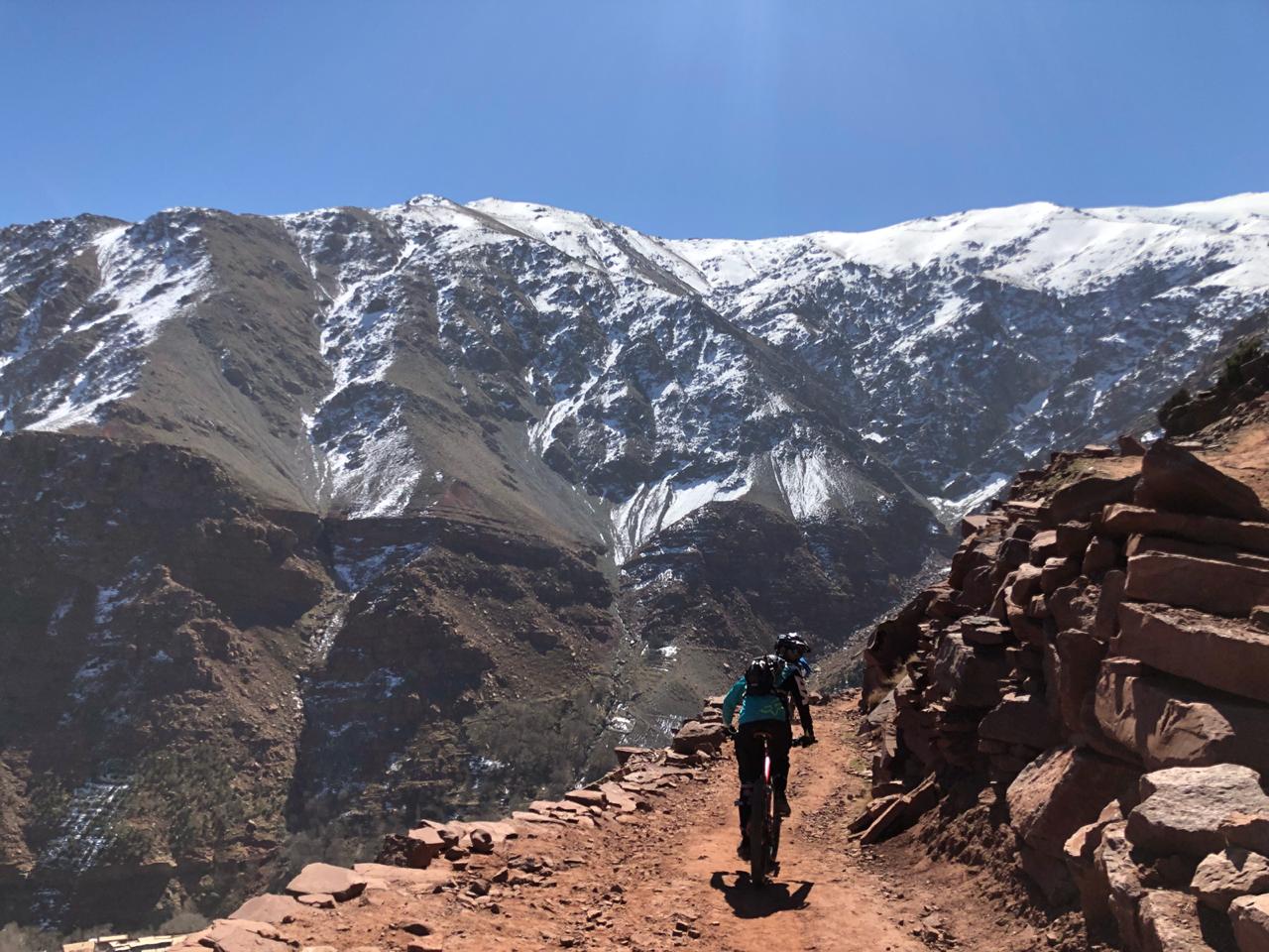 Transfers from Marrakech to Ski resort of Oukaimeden at 2660m, ride from Oukaimeden uphill to Tizi Addi, we will ride then a technical singletrack down to Tachedirt valley, and then to Tingherine from here we will climb up to Tizi Tamatert 2300m, from here ride down on singletrack to Imlil, overnight in Imlil.